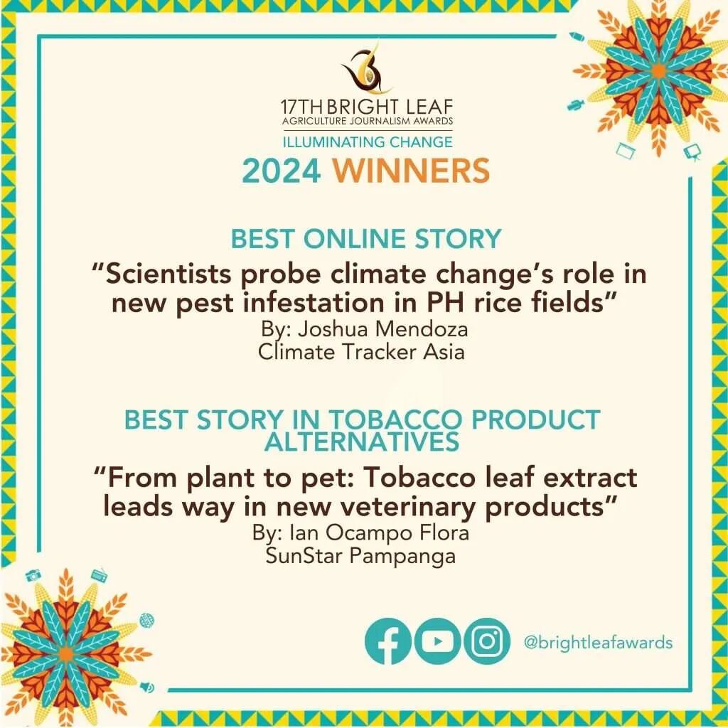 MANILA, Philippines — A Climate Tracker Asia reporter was among the winners at the 17th Bright Leaf Journalism Awards, which honors impactful reporting on the Philippine agriculture sector.