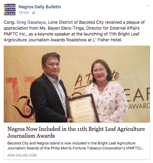 Bacolod City and Negros Island is now included in the Bright Leaf Agriculture Journalism Awards of the Philip Morris-Fortune Tobacco Corporation’s (PMFTC) social