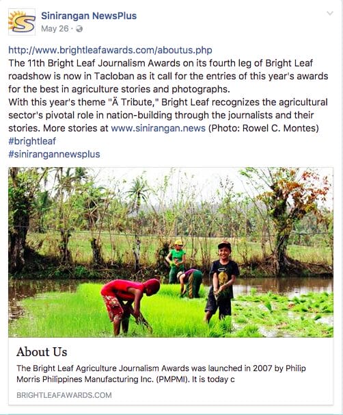 The 11th Bright Leaf Journalism Awards On Its Fourth Leg Of Bright Leaf Roadshow Is Now In Tacloban As It Call For The Entries Of This Year’s Awards For The Best In Agriculture Stories And Photographs.